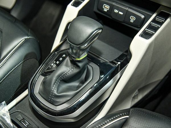 Ở khu vực bệ trung tâm, xe sử dụng cần số truyền thống. Phía trước có hộc chứa đồ nhưng thiếu đi sạc không dây so với bản cao hơn. Dãy nút bấm của các tính năng như làm mát ghế, bật/tắt cảm biến, kích hoạt nhanh camera lùi, chế độ lái… đã bị lược bỏ trên Carens 1.5L xăng Luxury vì đây là những tính năng không được trang bị.